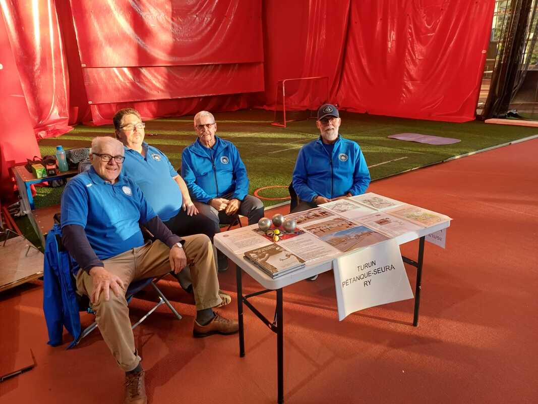 Turun kaupunki järjestää kaksi kertaa vuodessa ikääntyneiden testipäivän, jossa pääsee testaamaan omaa toimintakykyään. Tilaisuudessa seuroilla on myös mahdollisuus esitellä toimintaansa. Turun Pétanque-seura oli mukana keväällä ja nyt toisen kerran 6. lokakuuta. Esittelemässä olivat, Kai Aaltonen, Juhani Airaksinen, Raimo Karppinen ja Esa Tuominen. Järjestimme toiminnastamme kiinnostuneille kolmen kuulan asetuskilpailun sisäpelikuulilla, matkana oli kuusi metriä. Palkintona oli vapaa pääsy seuran talvihalliin syyskaudeksi. Asetuskilpailun voitti Kai Salonen tuloksella 50,0 cm. Kai oli mukana jo viime lauantaina seuran harjoituksissa. |