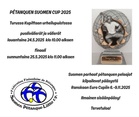 Pétanquen Suomen Cup 2025 järjestetään Kupittaan petankkikentillä 24.-25.5. Lauantaina puolivälierät ja välierät klo 10.00 alkaen ja sunnuntaina finaali klo 11.00 alkaen. Suomen parhaat pétanquen pelaajat kilpailevat pääsystä Ranskan Euro Cupiin 6.-9.11.2025. Yleisöllä vapaa pääsy kilpailupaikalle. Tervetuloa. |