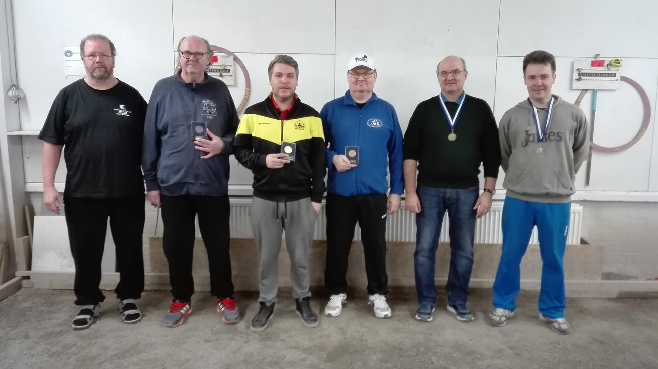 Kuvassa keskellä kilpailun voittajat Ville Punta ja Mika Metsä-Eerola (HBY). Vasemmalla toiseksi tulleet Kari Randell ja Jukka Virtanen (TUR) sekä oikealla kolmanneksi sijoittuneet Lassi Mäki ja Timo Puska (TUR).